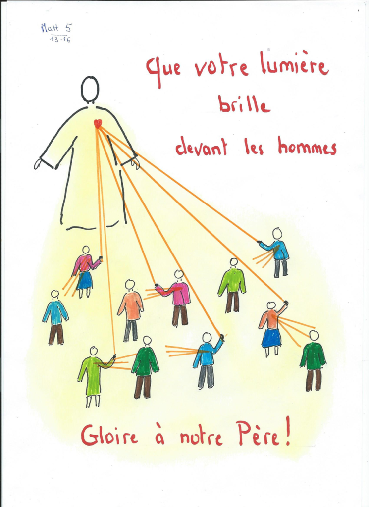 C’est ainsi que l’amour de Dieu devient contagieux, comme la lumière, c’est en le partageant qu’il se multiplie. Ainsi, en voyant ce que vous faites de bien, ils rendront gloire à votre père qui est aux cieux. Ne soyons plus ni fades ni obscurs, mais donnons du goût et révélons les dons de Dieu en nous et autour de nous.