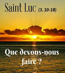 L’Évangile de ce jour nous fait prendre conscience que le cœur de l’homme n’est pas que ténèbres. Les questions qui sont posées aujourd’hui à Jean nous font entrevoir qu’une conversion est possible. Nous aussi, nous voudrions avoir la réponse la plus ajustée à la même demande : « Que dois-je faire ? »
