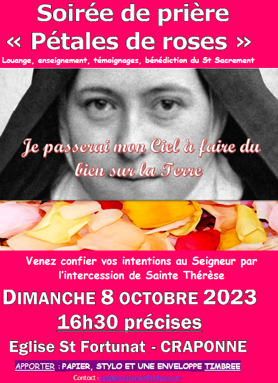 Dimanche 8 octobre à 16h30 très précises à l’église de Craponne pour une prière festive autour de Ste Thérèse