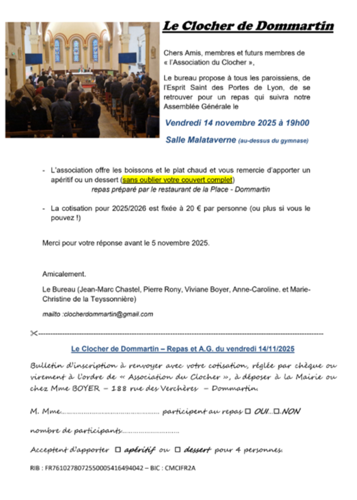 Repas paroissial le vendredi 14 novembre 2025